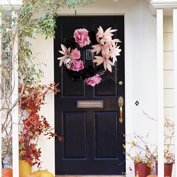 花浅笑クロスボーダー新品ハロウィンホーム幽霊門掛スカルバラ籐花輪お化け屋敷ホラーパーティー