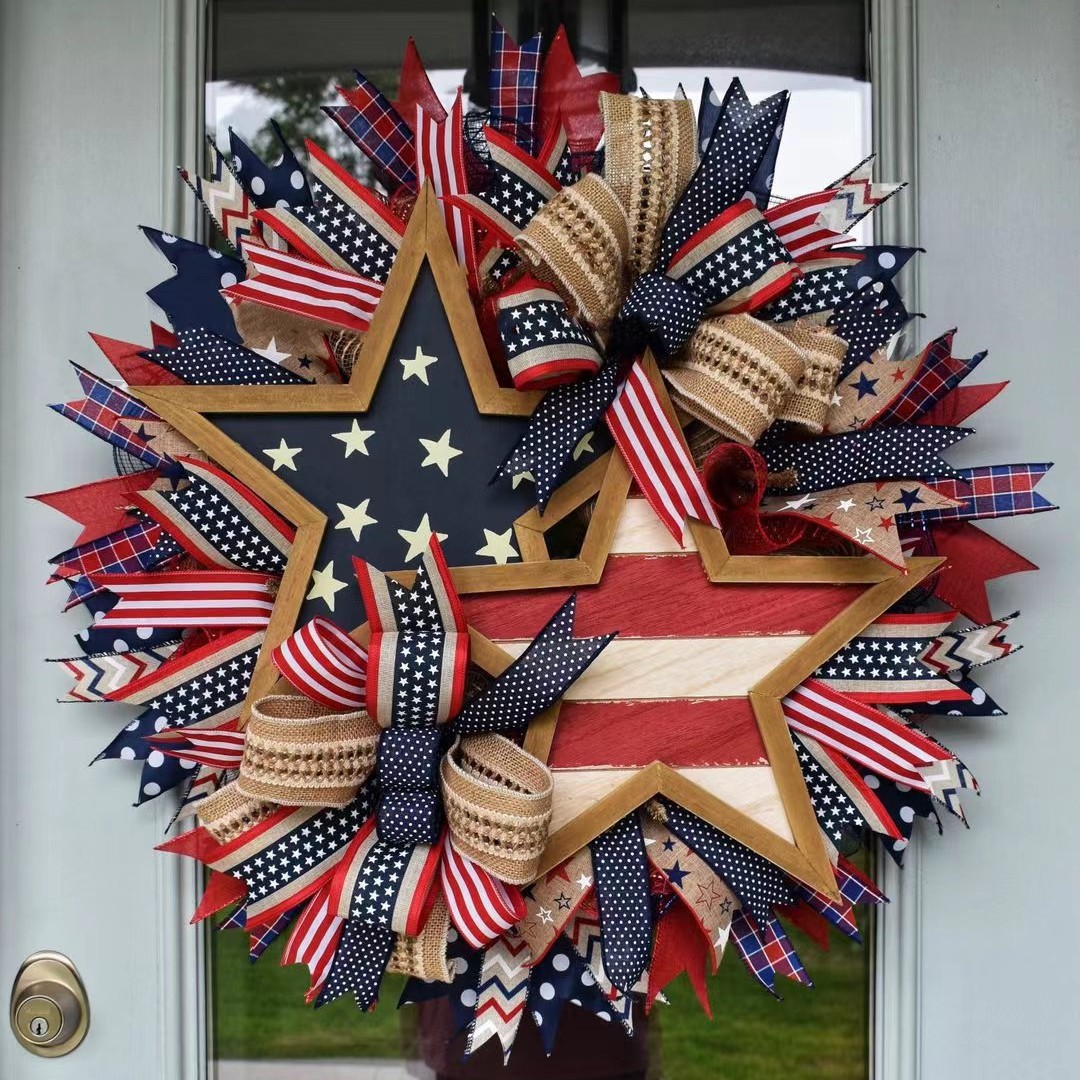 花浅笑アメリカ国慶節独立日花輪装飾品家庭祝日装飾道具国境を越えたショーウインドー装飾