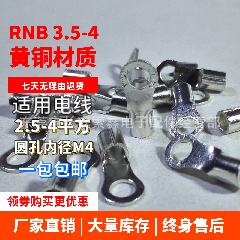 RNB3.5-4黄銅紫銅厚手錫メッキ冷間圧接線端子o型丸型銅線耳配線器材