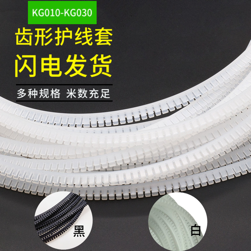 KGシリーズ ワイヤー保護カバー 歯型ワイヤー保護カバー フリーカット絶縁カバー 白黒プラスチック製多用途ワイヤーハーネス