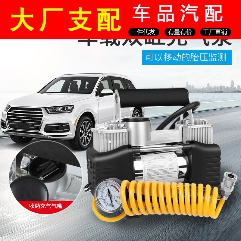 車載インフレータブルポンプ乗用車携帯型自動車タイヤインフレータブル電動二重シリンダー車用エアポンプ