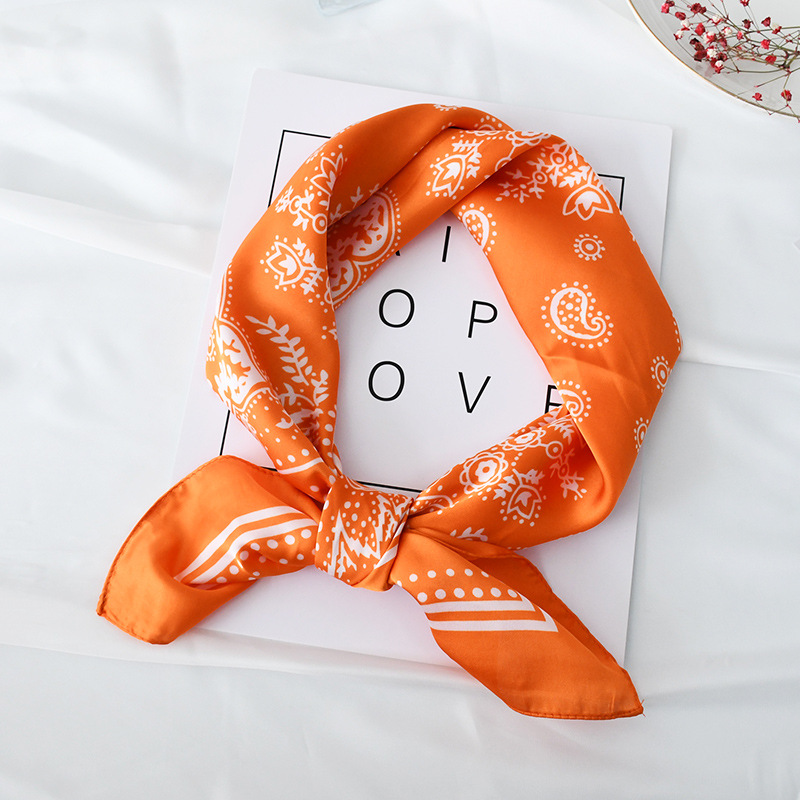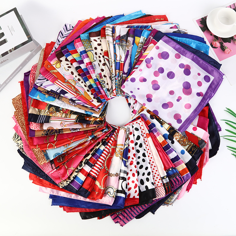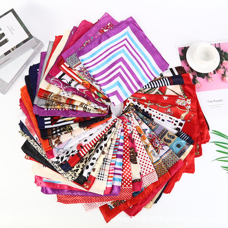 クロスボーダー卸売り50cm色丁プリント多種類の小方巾韓国版小襟巾職業服装女性プリントシルクタオル