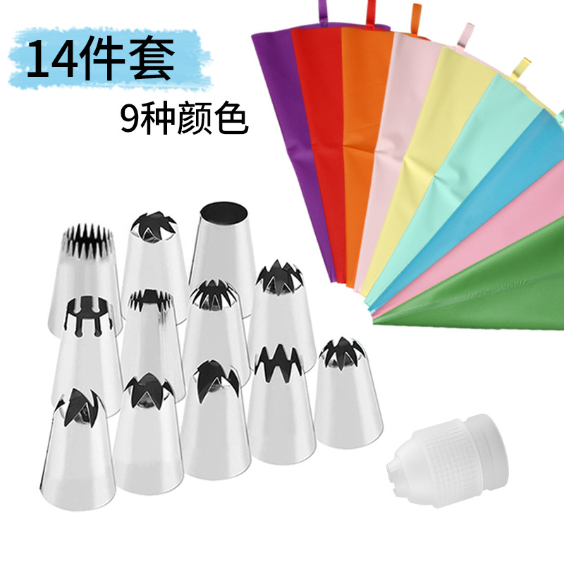 大きいサイズのクリームの表装の口の14セットの変換器のケーキの表装の袋は豆のクッキーのツールを溶かします。