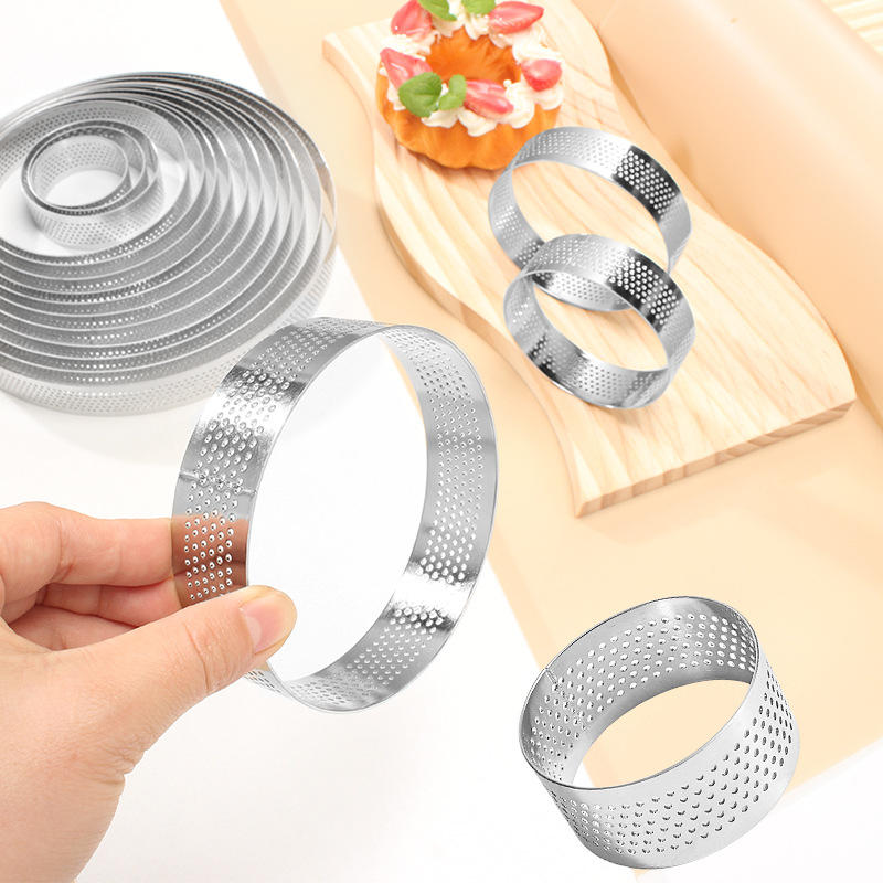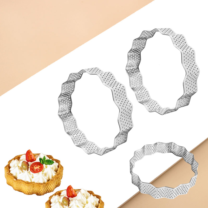 430ステンレスウェーブラウンドパンチングタルトリングムースサークルモールド2.0ハイレース穴付きフレンチチーズタルト