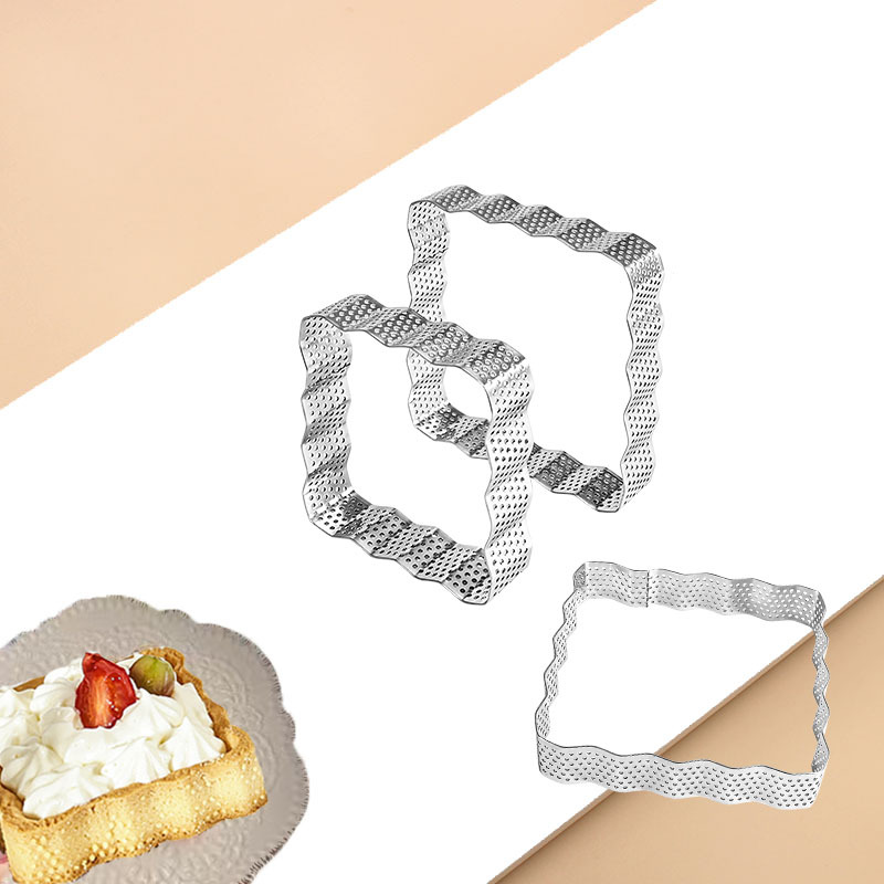 2.0高さ430ステンレスウェーブ正方形パンチングタルトリングレース穴付きフレンチフルーツチーズタルトリング