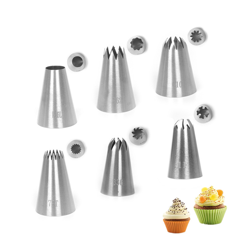 クロスボーダー304シームレス表装ノズル6pcケーキ表装クッキークリームケーキ装飾ツールNH-304-05