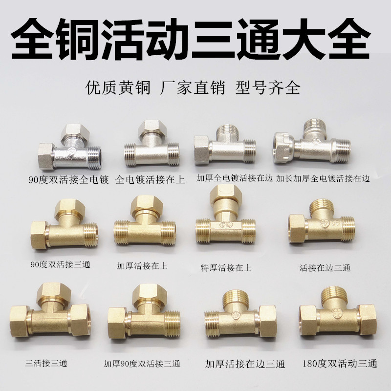 内外三方継手、三方4可動管継手、内外銅歯三方継手