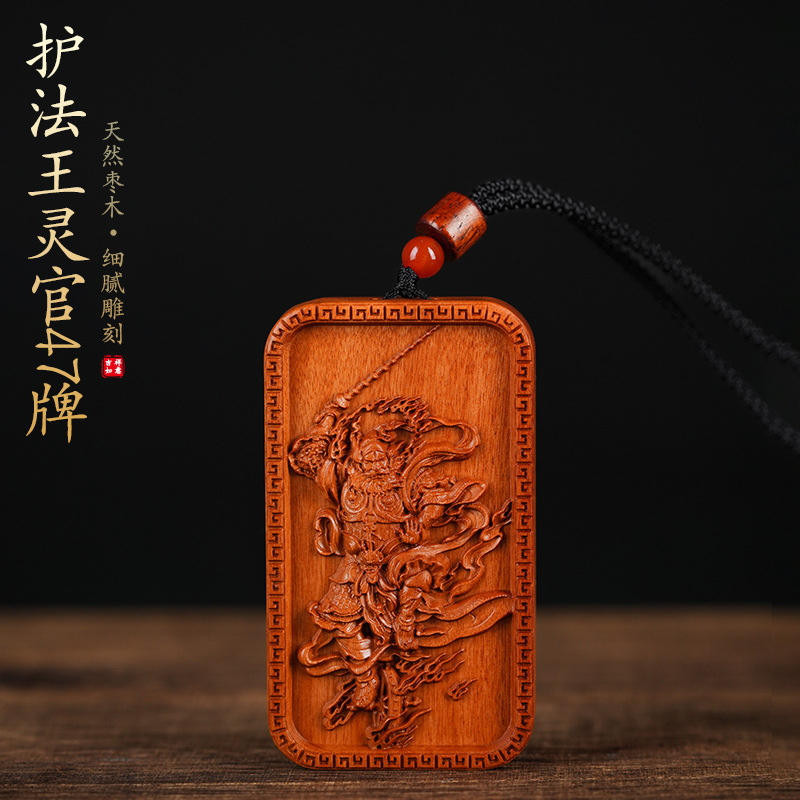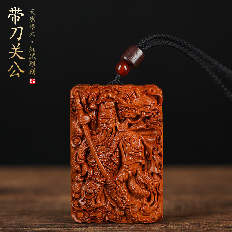 Guardian King Lingguan 46 カードデーツウッド道教文化用品ペンダント無垢材ジュエリー彫刻文具レリーフ天然デーツウッド