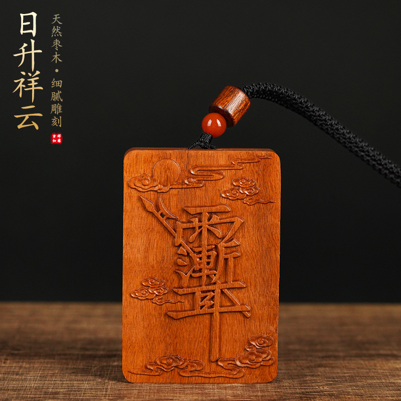ナツメ材風景ブランドペンダント、道教文化用品ペンダント、無垢材ジュエリー、精巧な彫刻、平安レリーフ、自然雷撃
