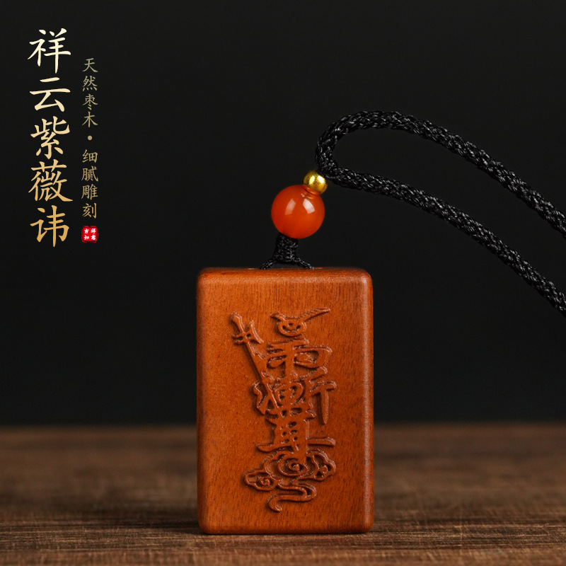 Xiangyun Zibei ペンダントハンドピース、天然ナツメ材の古い素材、持ち運びに便利な彫刻されたレリーフペンダント、絶妙な雷打たれブランド