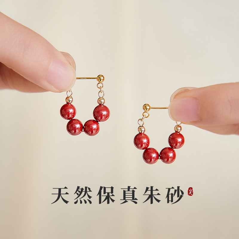 朱砂のイヤリングの赤いレトロなイヤリングの古風な純銀のイヤリングの新しい中国式の玉のイヤリングの軽豪華な高級感の沁妍