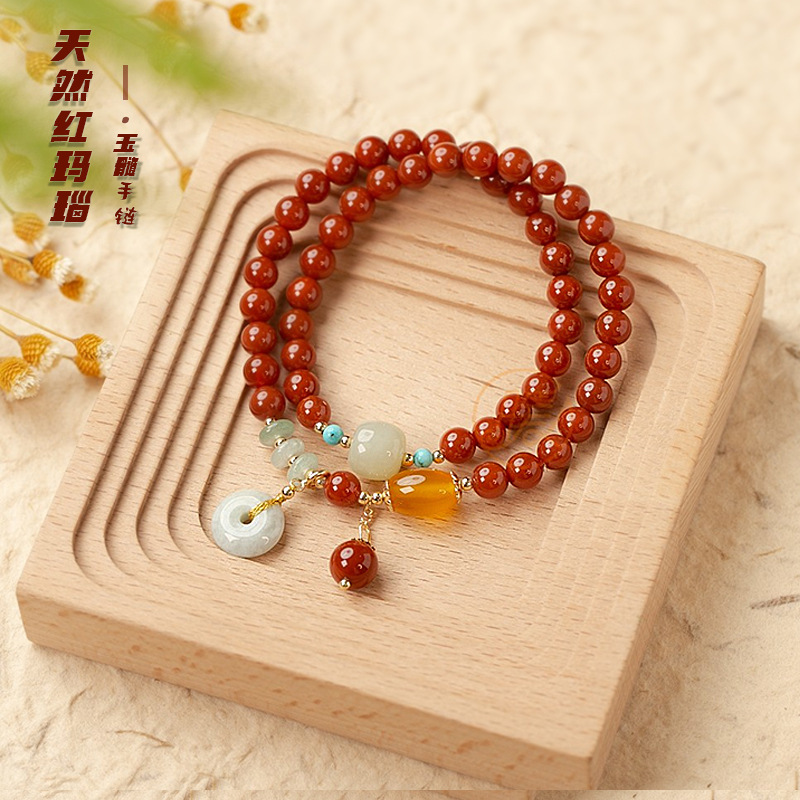天然の紅瑪瑙の玉髄の女性の手の串の双輪の玉の平安はペンダントの設計を掛けて彼女の手を飾ってブレスレットを飾ります。