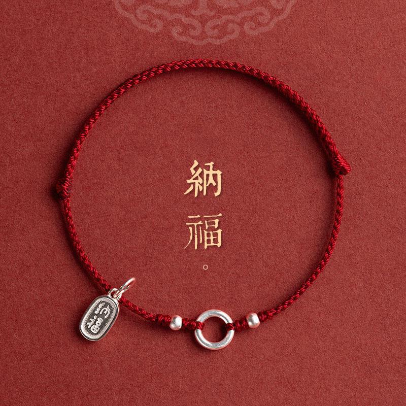 アマゾン手作りの幸運と富を呼ぶお守りビーズ足首飾り 925シルバー赤い紐編み込みの干支年用個性的な安全足首飾り