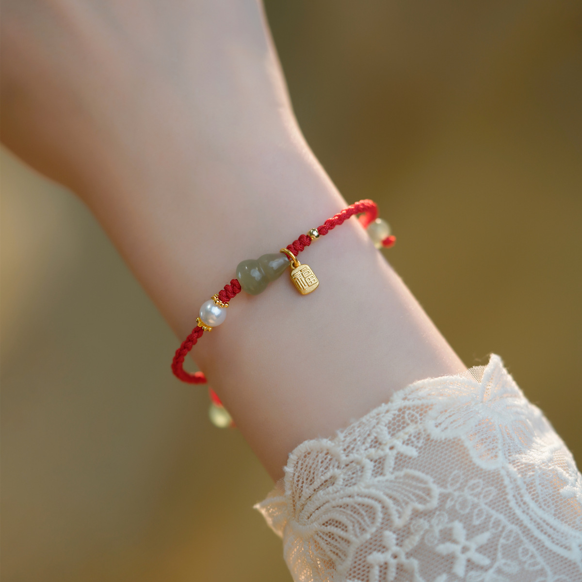 おすすめジュエリー瓢箪和田玉真珠福牌新年本命年赤縄ブレスレット誕生日プレゼント感女