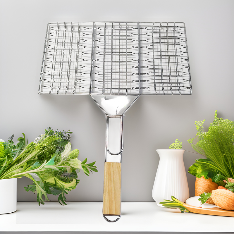 メーカー現物六ハンバーガー焼き網メッキ大サイズ焼き魚クリップbbq焼き網屋外焼肉クリップ焼き工具