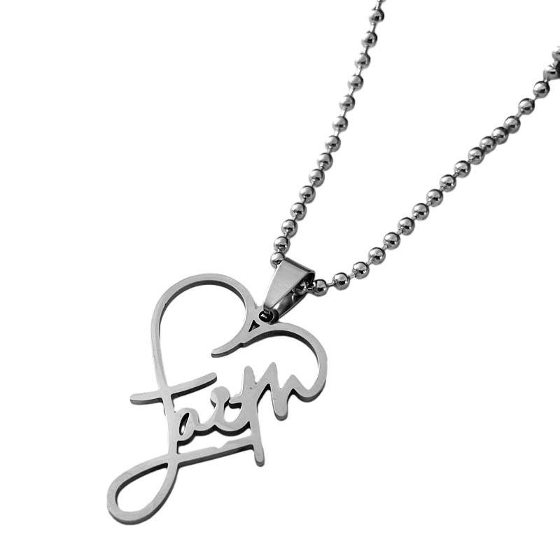 ステンレスハート型ネックレス欧米風英語アルファベットペンダントFaith文字信仰ペンダント両面研磨