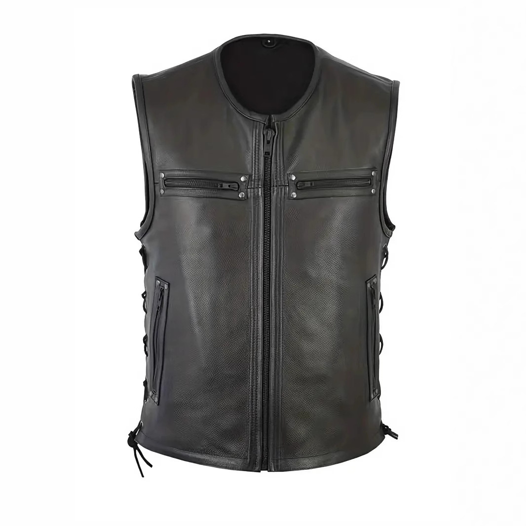 2024新型速売アマゾンWish爆発金純色馬甲機関車立襟皮馬甲車列パンク