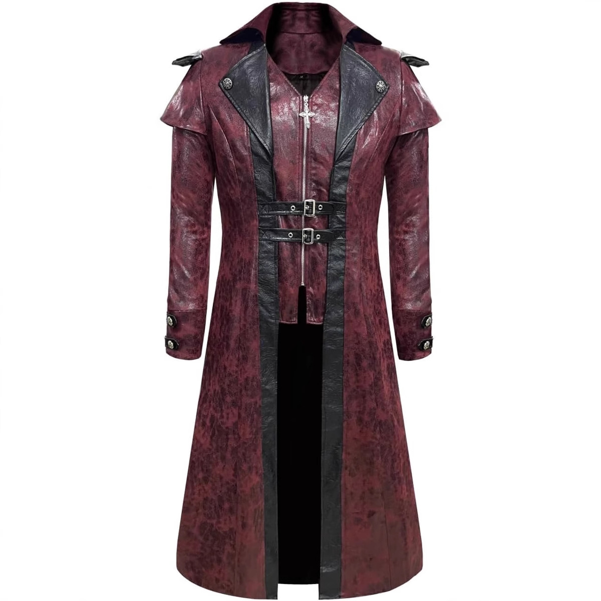国境を越えた新型ハロウィーン中世復古pu皮コート長ゴシック式パンク演技服毛皮コート