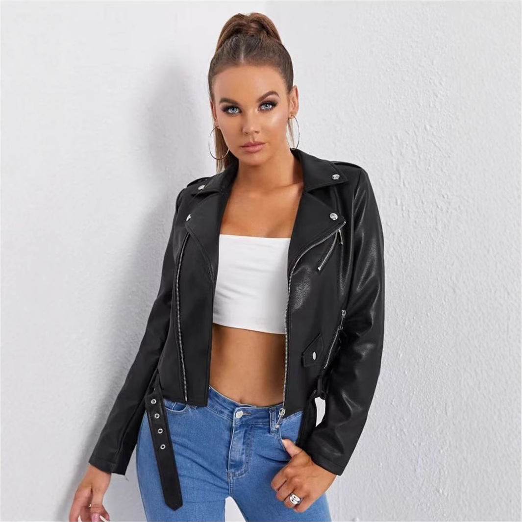 ヨーロッパとアメリカの女性の卸売レトロなスタイリッシュな女性の 2025 春夏の新しいスタイルのオートバイのジャケットレザージャケットトップ
