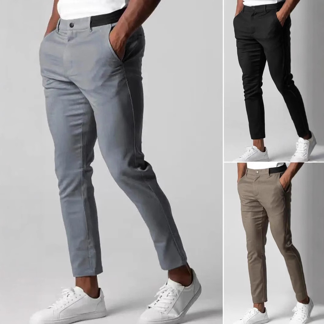 男性運動弾力ズボン2025新型純色カジュアルスーツズボン夏欧米クロスボーダー修身小足ズボン