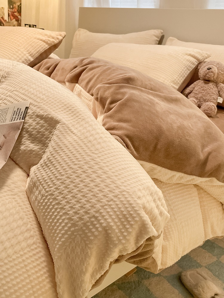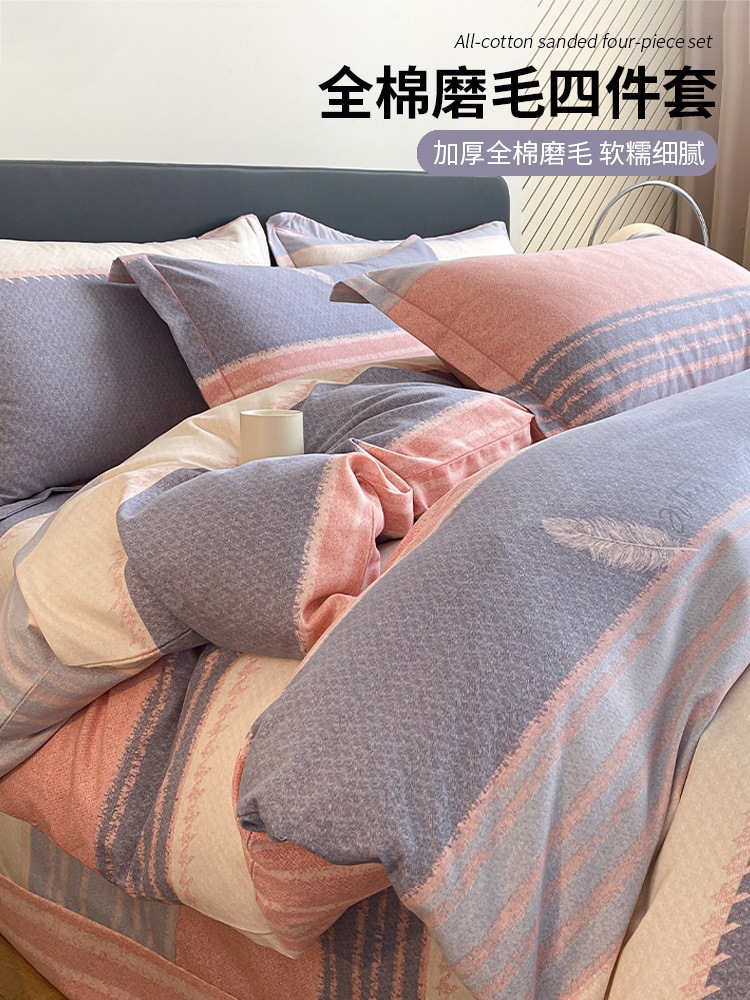 高級感純綿二重糸ベッド4点セット100綿軽贅沢布団シーツ磨毛ベッド用品3点セット4