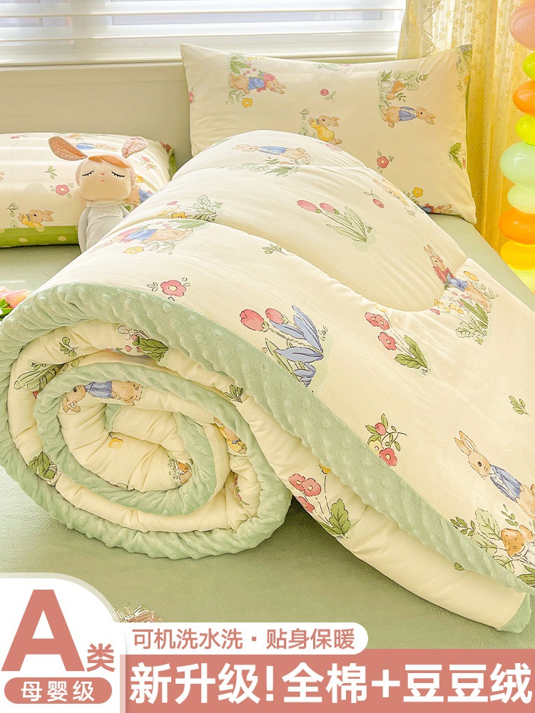 冬の厚手の純純綿の豆の絨毯の布団の寮のベッドのシングルカバーは超厚い牛乳の絨毯のベッドの上で使われます。