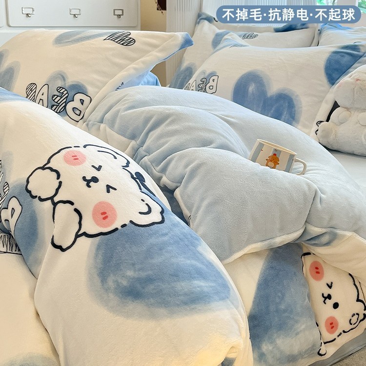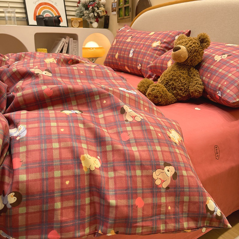 Insアニメ純綿ベッド4点セット純綿ベッド用品子供可愛い布団カバー寮シーツ3点セットベッドカバー4