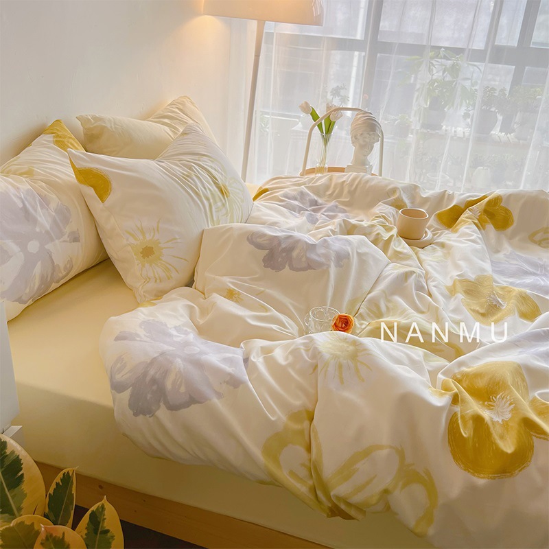 主役の光 | クリーム黄癒し系純綿4点セット夢の手描き花綿3点セットベッド笠金
