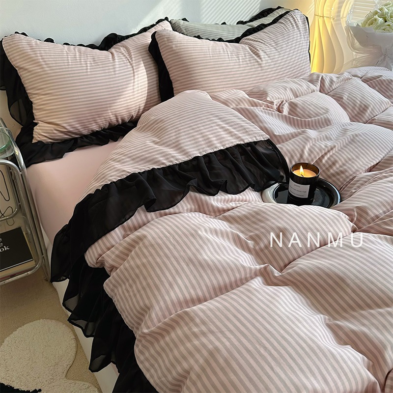 花菓子思愛 | 純欲風黒レース純綿4点セット少女裸粉縞綿寝具1.8m