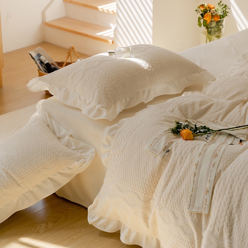 Ins韓国式牛乳の毛の4つのセットの王女の冬の厚い保温のサンゴの毛のフランネルの布団のシーツのベッドの笠