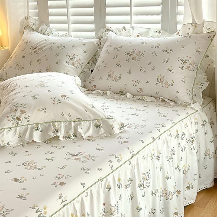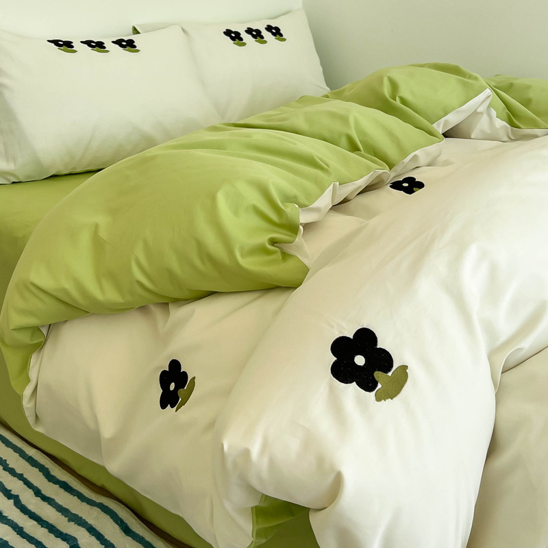 小清新ins純綿ベッド4点セット100純綿刺繍布団シーツ人3点セットベッド用品ベッド笠