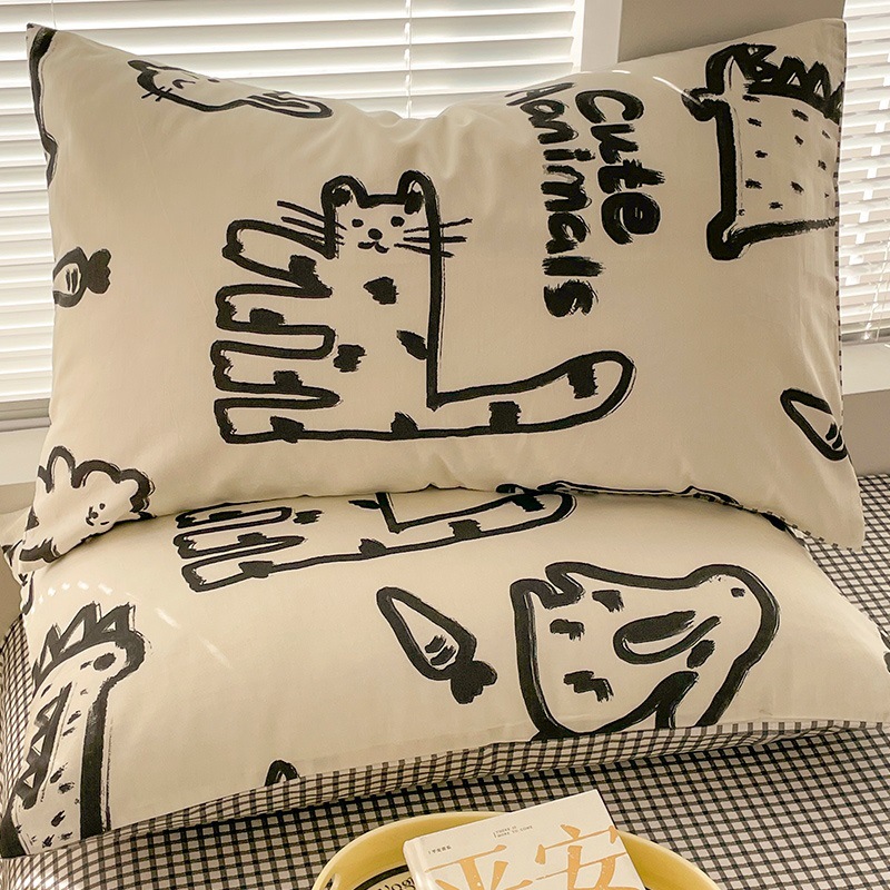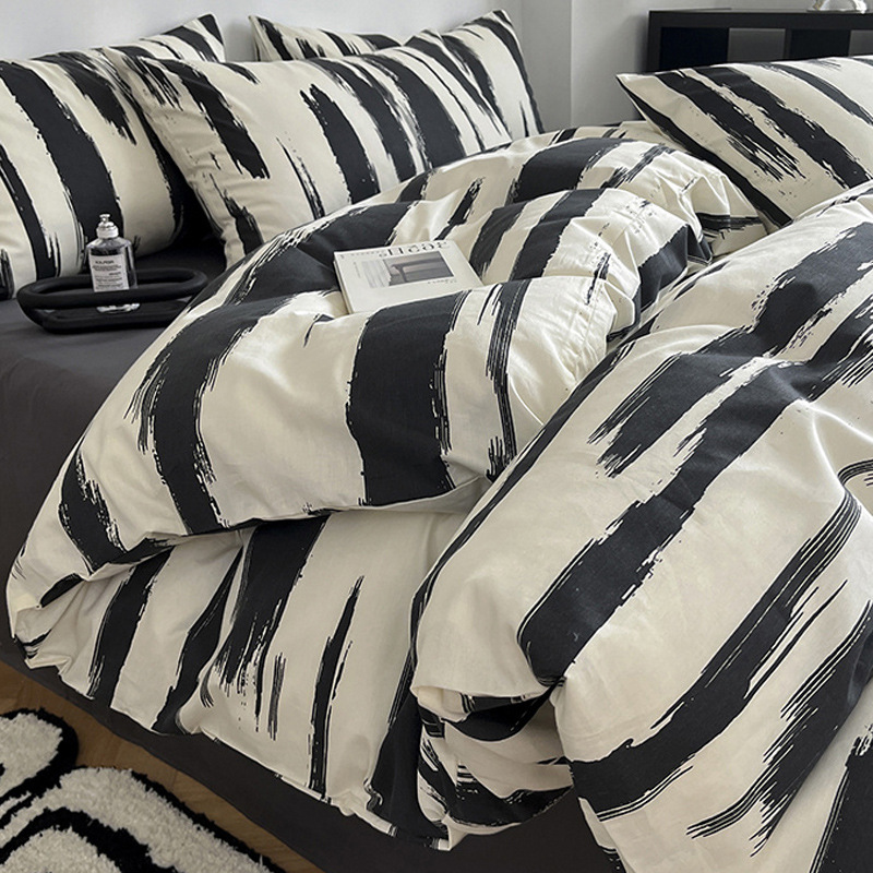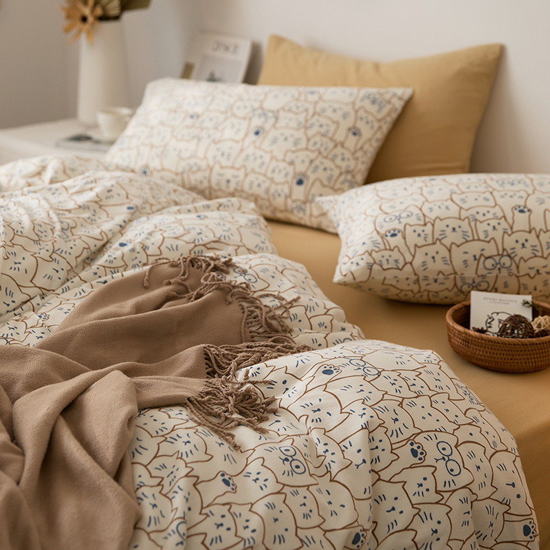 純綿洗濯綿ベッド4点セット100綿寮シーツベッド用品3点セットベッド笠格子布団カバー男4