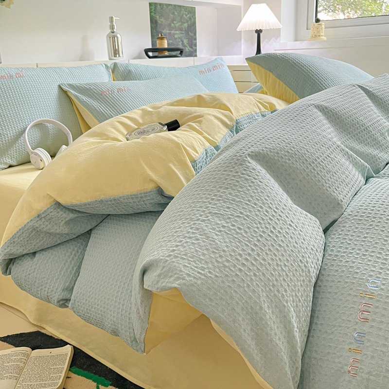 ワッフル純綿ベッド4点セット100綿刺繍布団カバー軽贅沢シンプル1.2mシーツ3点セット