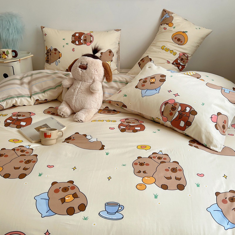 漫画ベッド綿4点セット100綿夏女の子かわいい寮布団シーツベッド用品3点セット4