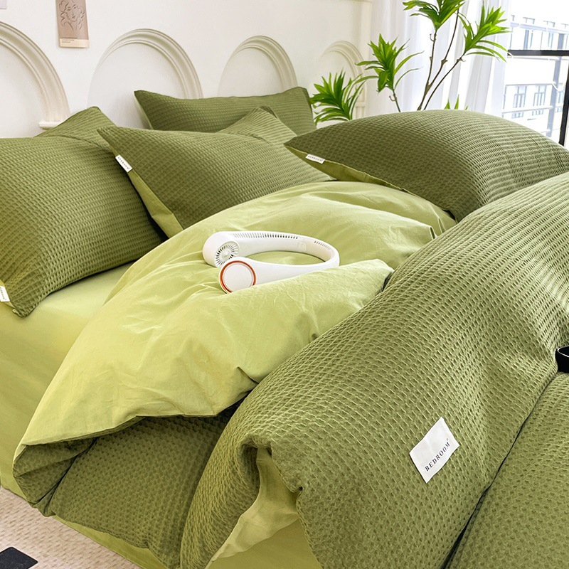新型純綿a類碁盤ワッフル四点セット純綿軽豪華シーツ布団カバー三点セットシングルベッド笠枕カバー