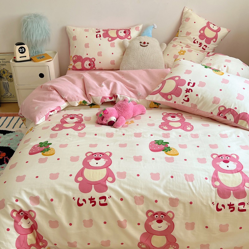 アニメいちご熊純綿四点セットかわいい100綿布団カバー児童ベッド三点セット1.8メートルベッドカバー
