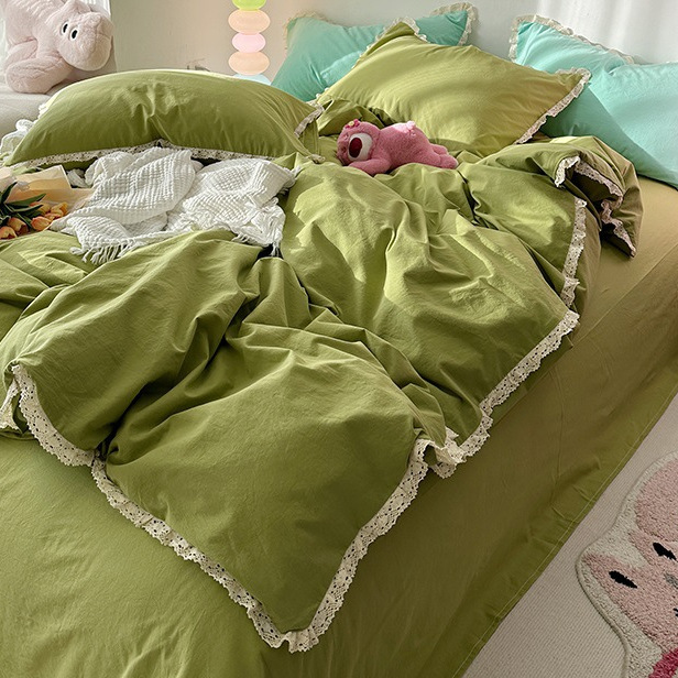 ミルク昔緑少女心お姫様風水洗い綿純色レース四点セット純綿マンション布団カバーシーツ