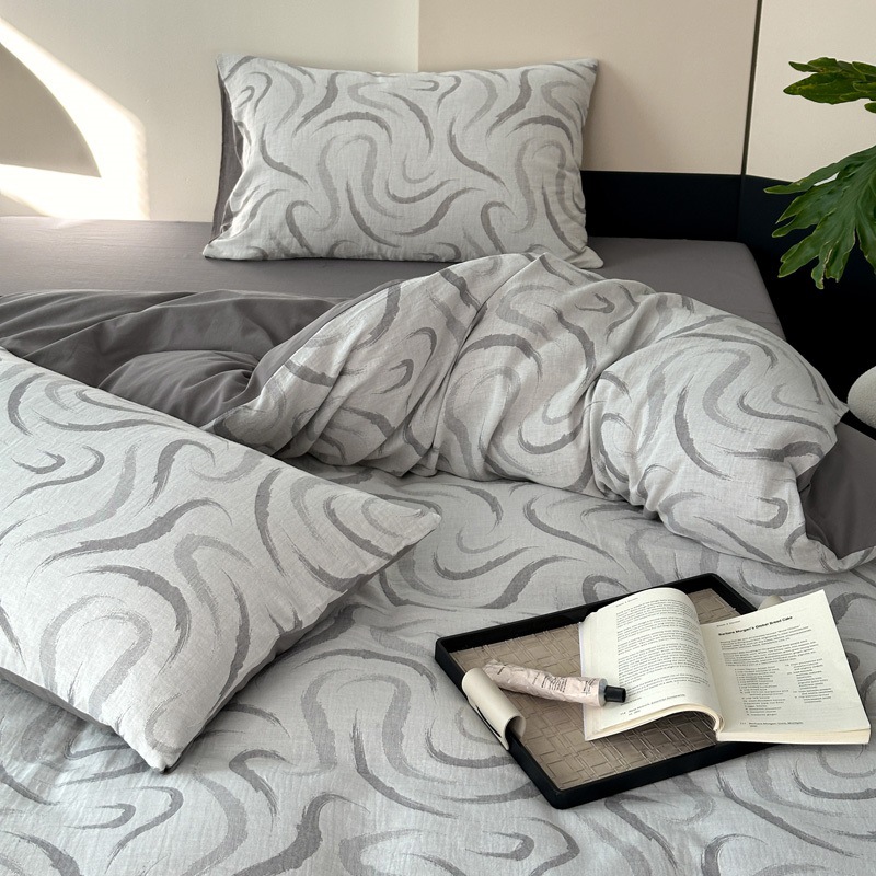 2024新型ab版針刺しジャカード4点セット-メッシュ-墨恋シリーズ1.5mシーツ4点セット