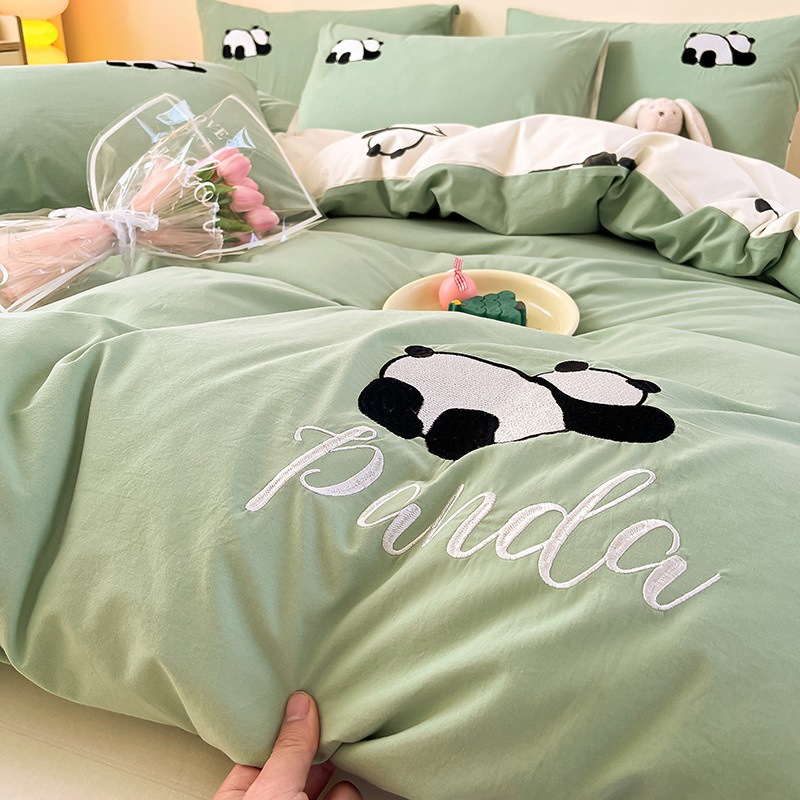 漫画水洗浄綿綿ベッド4点セット純綿刺繍子供布団シーツ男性寮パンダ3点セット
