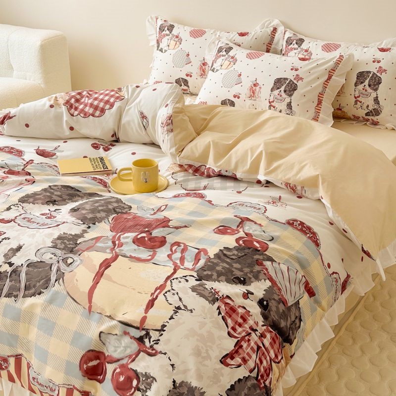 純綿ins小砕花純綿田園風シーツ床笠四点セット