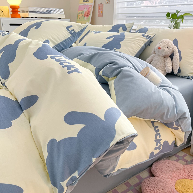 青いウサギの綿のベッドの上の4つのセットの純綿のかわいいベッドの漫画の子供の布団の女子のシーツの3つのセット