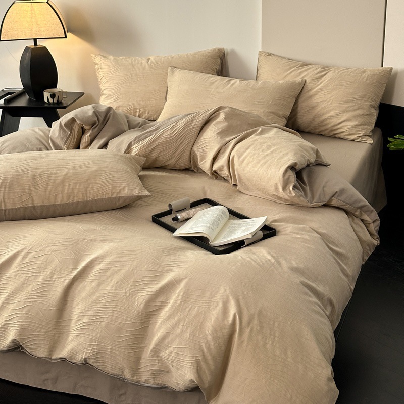 シーツ100純綿高級感ベッド用品綿四点セットベッド笠軽豪華ワッフル布団カバーベッド