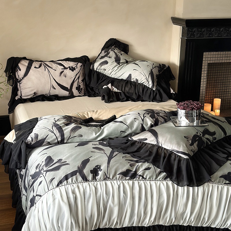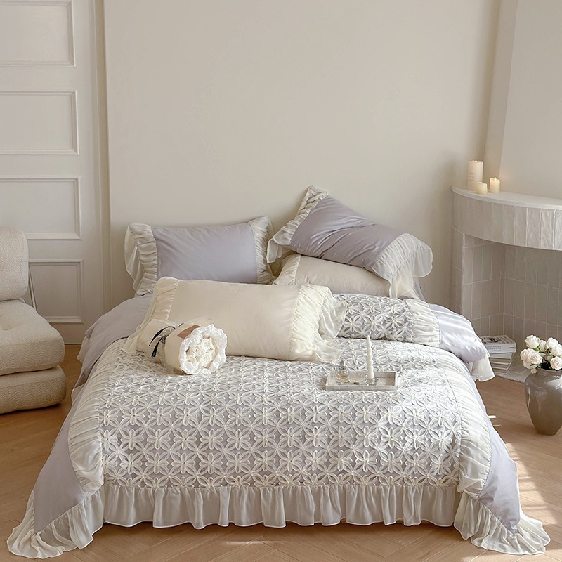 夢露王女軽豪華フランス100本超ソフト超ソフトレース雪紡糸四点セット綿カバー高級感