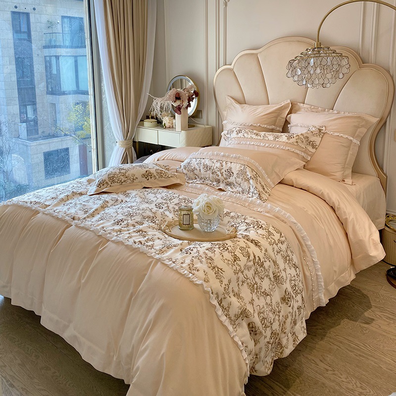 フランス式100s高枝長絨毛綿4点セットお姫様風レース布団カバー全綿ツイン1.8m寝具