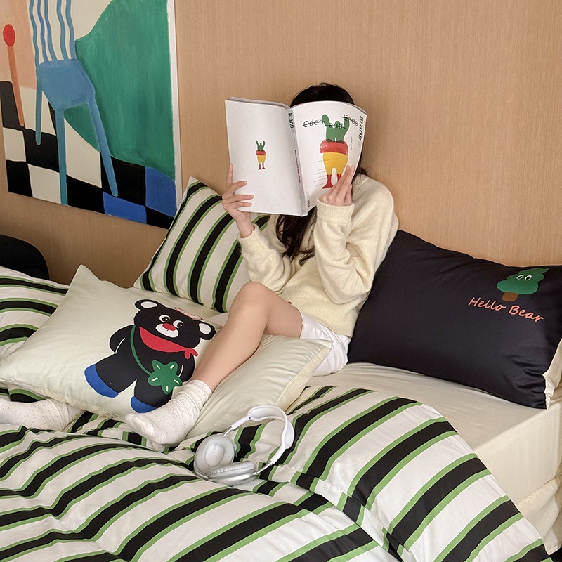 Insドーパミンベアー全綿水洗浄綿4点セット1.5m1.8メートルマンション布団寮純綿