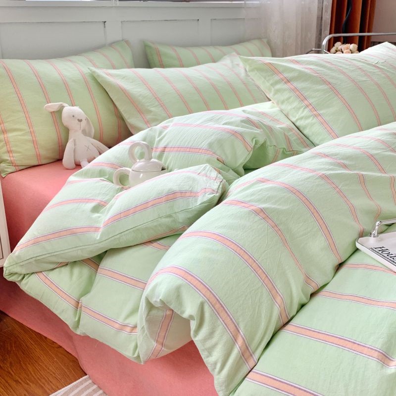 A類日本式色織水洗い綿ベッド4点セット綿綿綿100縞布団シーツ3点セットベッド笠