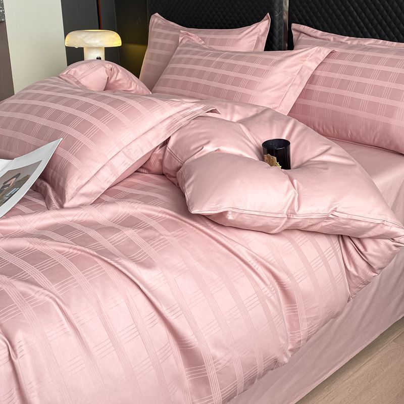 2024新型a類全綿60功サテンジャカード4点セット-井桁格1.5mベッド笠カバー1.2点セット