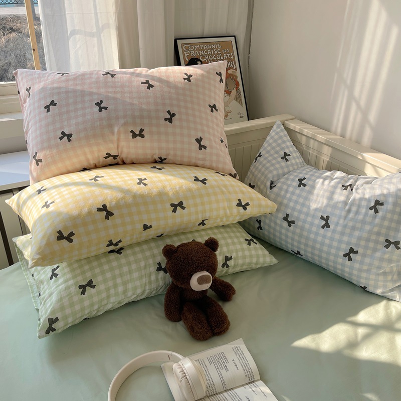 Insの格子の蝶結びの水洗い綿の純綿の単品の枕カバーの純綿の枕の袋の少女の心の信封式の内胆のカバー