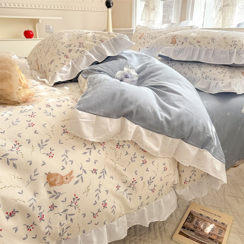 お姫様風純綿ベッドスカート4点セット100純綿布団シーツ学生寮シングルベッド3点セット
