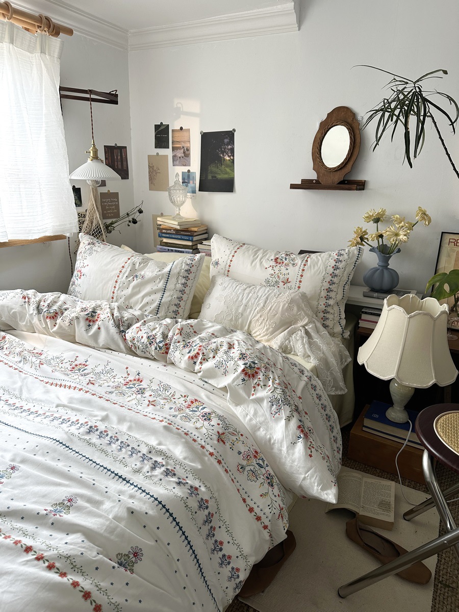 Insレトロ砕花純綿ベッド用品4点セットシーツ布団カバーベッドカバー3点セット